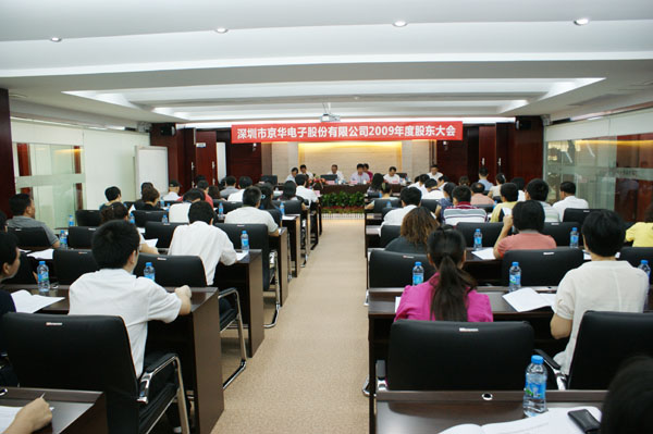 2010年7月20日上午,KY开元·(中国)集团公司2009年度股东大会在装饰一新的会议室隆重举行。出席本次股东大会的股东代表有:南京熊猫电子股份有限公司、深圳中电股份有限公司、熊猫电子集团有限公司、深圳市中电物业管理有限公司、内部职工股东代表共71人,代表股数为104741485股,占总股份的91%。符合《公司章程》的有关规定,本次股东大会合法有效。